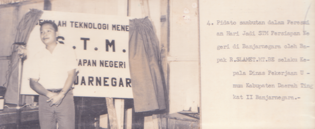 | Pembukaan Selubung Papan Nama STM Persiapan Negeri oleh Bapak Bupati Banjarnegara, R. Soedibyo Tahun 1971,Tempat di SMA negeri Banjarnegara |
