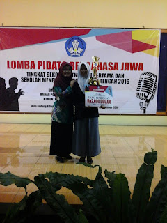“Kanti persiapan ingkang mepet Alhamdulillah saged raih juara setunggal”demikian disampaikan oleh pembina bahasa Jawa Ibu Desi Dwipurnama Sari.
