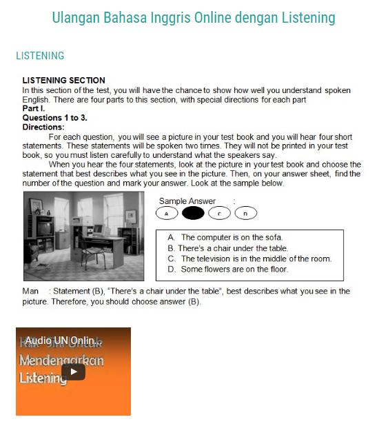 3. Klik Listening untuk mendengarkan pertanyaan listening