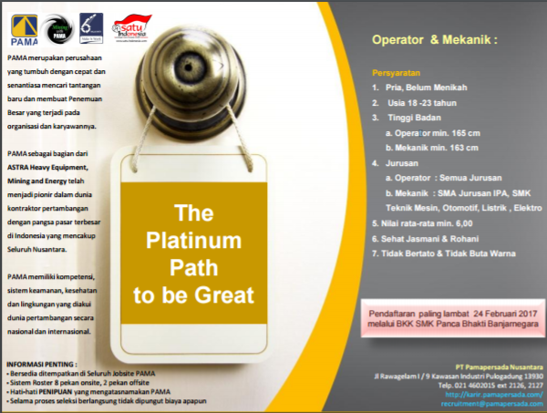 Pendaftaran melalui: BKK SMK Panca Bhakti Banjarnegara