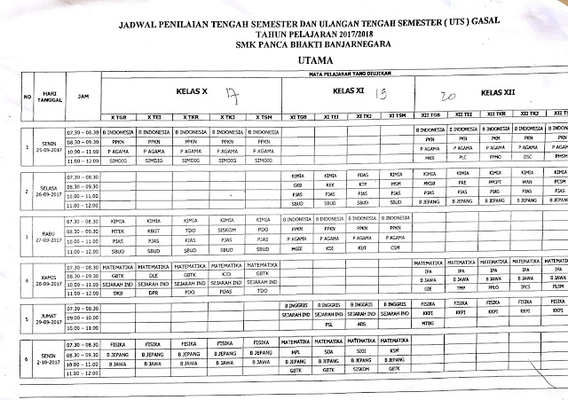 PTS bukan singkatan dari Perguruan Tinggi Swasta lho? SMK Panca Bhakti Banjarnegara telah melaksanakan PTS pada semester ini (Ganjil) yaitu dari tgl 25 September s.d. 3 Oktober 2017. Jadwal PTS klik disini.