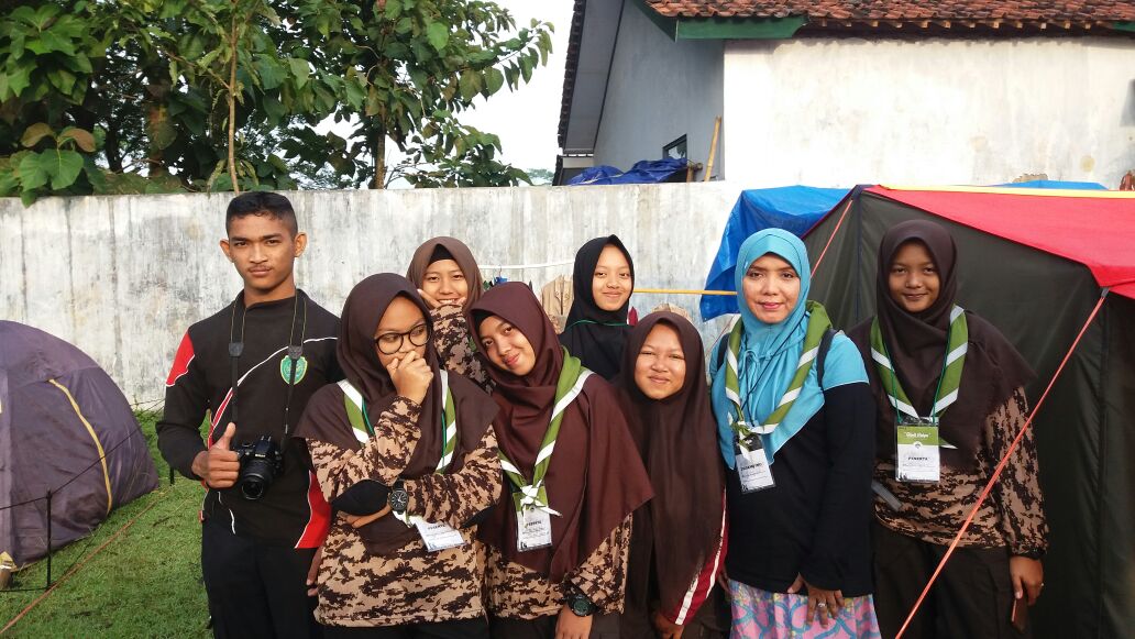 Kontingen SMK Panca Bhakti Banjarnegara Sri Rama dan Dewi Sinta dengan Pembina Ibu Rosi.