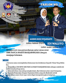 Banjarnegara, Perhelatan yang selalu di tunggu tunggu oleh peserta didik di sekolah adalah Pemilihan Ketua Osis. Bertemakan Kebersamaan dalam Kepemimpinan dan Menggali Potensi Peserta Didik dalam Masa Pandemi Abad 21, Pembina Osis bapak Donny Adriansyah Indra Putra, S.Kom mengajak peserta didik untuk berpartisipasi dalam ajang bergengsi ini.