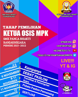 Dilaksanakan dalam masa pandemi, secara daring menggunakan kanal Instagram Official SMK Panca Bhakti dan Youtube Kilometer 05, pemilih akan disuguhkan Debat Calon Ketua Osis dan Wakil Ketua Osis dengan apik.