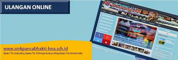 Daftar Ulangan OnlineSMK Panca Bhakti Banjarnegara:a. Mapel Normatif dan Adatif No.Nama MapelGuruMateriProgram StudiMengerjakan1.KimiaHermawan, S.SPd Reaksi KimiaSemua Klik Mengerjakan 2.Bahasa InggrisEra Widyasani, S.Pd.IngUjian SekolahSemua Klik Mengerjakan 3.MatematikaBehi Awal, S.PdUjian SekolahSemua Klik Mengerjakan 4.PAIPak Azi, S.PdUlangan PAI OnlineSemua Klik Mengerjakan b. Mapel Kejuruan No.Nama MapelGuruMateriProgram StudiMengerjakan1.PPMOTri Haryadi,SPd Engine dan KomponenTeknik Kendaraan Ringan Klik Mengerjakan 2.Soal Teori KejuruanTri Haryadi,SPdSoal Teori KejuruanTeknik Kendaraan Ringan Klik Mengerjakan 2.AutoCAD Sarastiana Pemahaman AutoCADTeknik Gambar Bangunan Klik Mengerjakan 3.MKA Sarastiana Bahan AluminiumTeknik Gambar Bangunan Klik Mengerjakan 4.Konst.Baja Sarastiana Pemahaman BajaTeknik Gambar Bangunan Klik Mengerjakan